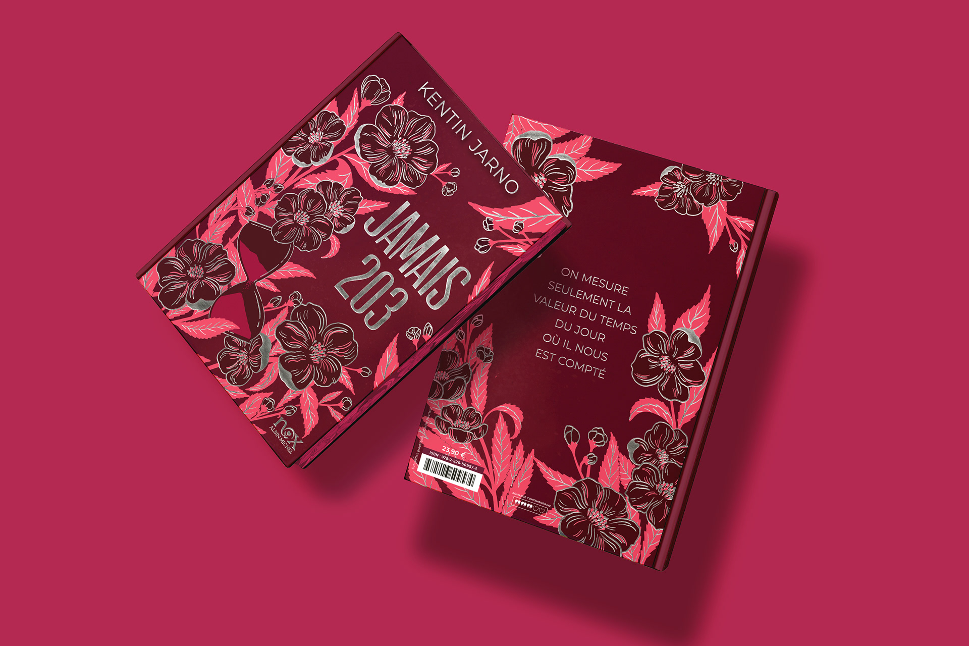 pour recouvrir la couverture tel un papier peint romantique, avec un fer à chaud argent, un gaufrage et un vernis sélectif.